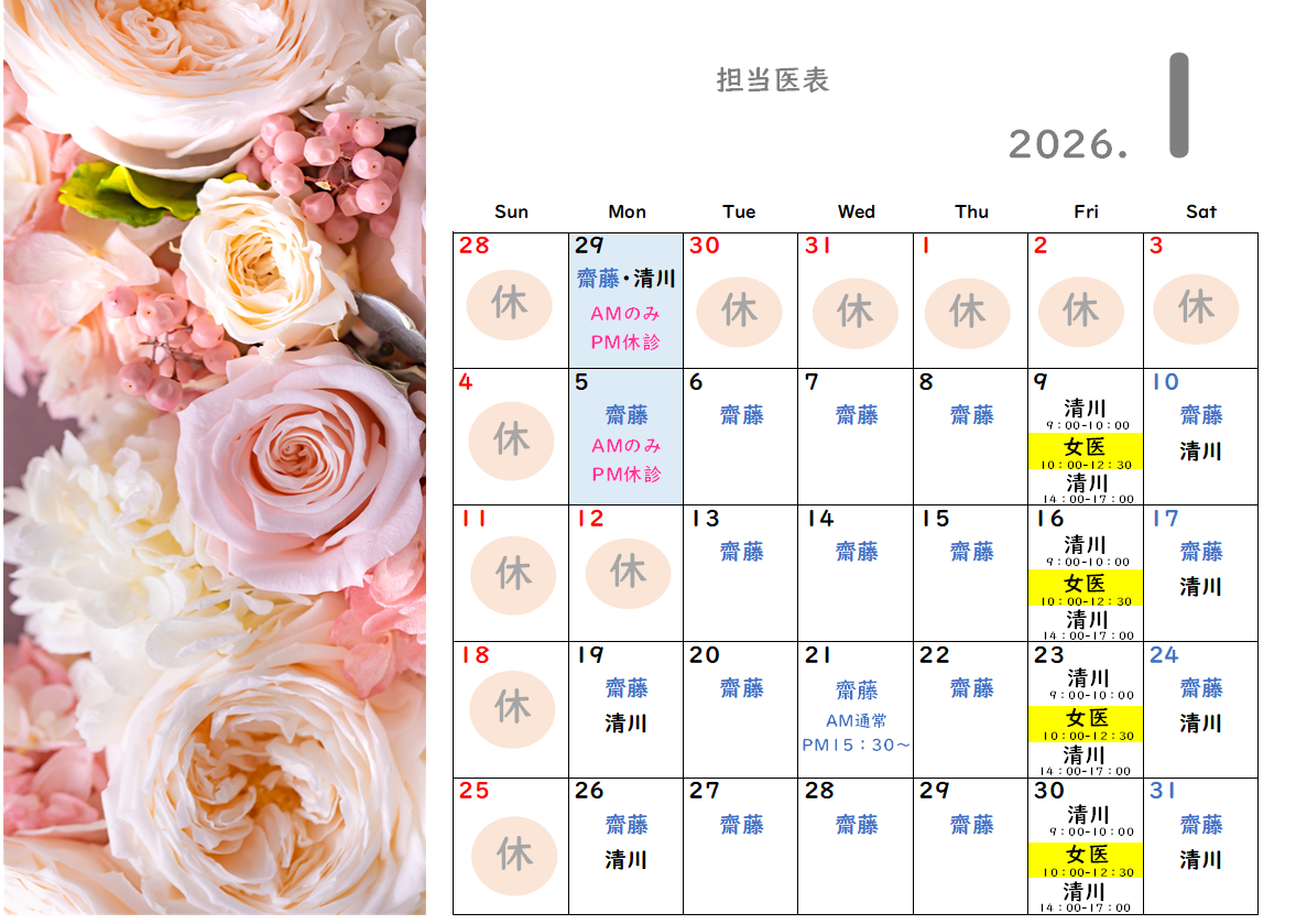 - 2026.1月の診療案内となります。