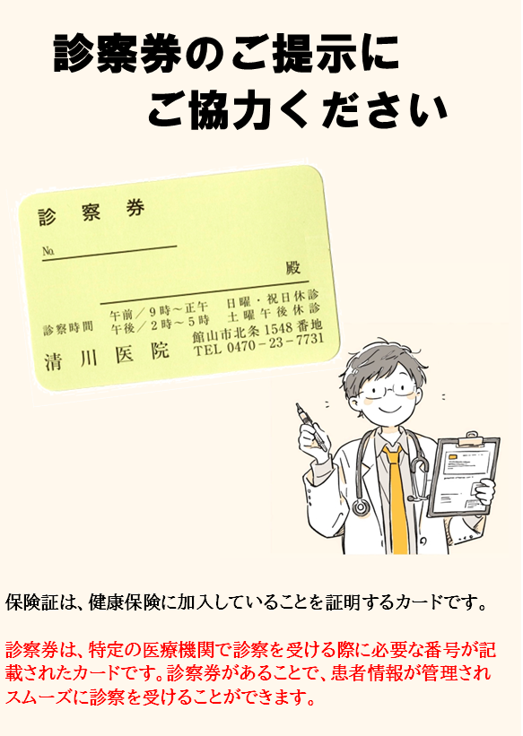 - 来院時に、【診察券・保険証(マイナ保険証)のご提示】の協力ありがとうござます。